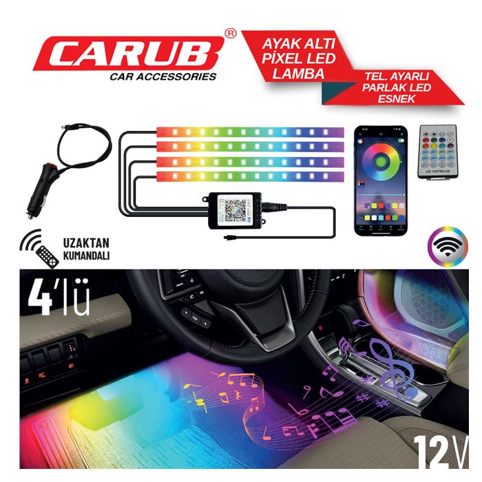- CARUB Ayak Altı Pixel Led Telf Ayarlı U.K 4 Parç BR4283711